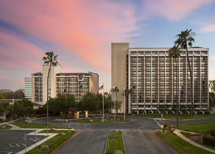 Santa Clara Marriott is a 4-star hotel in Silicon Valley with resort-like amenities and a Booking.com rating of 8.3/10. Guests can enjoy an outdoor pool, fitness center, and a selection of dining options.