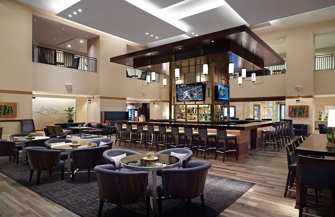 Dining options include Zenia Bar & Grille, serving contemporary American cuisine for breakfast, lunch, and dinner. Flexible dining settings range from a casual Starbucks to a market-style pantry for convenient snacks and meals.
