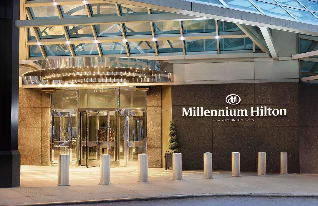 Millennium Hilton New York One UN Plaza is a 4-star hotel featuring 40-storey towers and excellent views of the NYC skyline and East River. This hotel caters primarily to diplomats and dignitaries visiting the nearby United Nations headquarters, providing a range of amenities including a business center, fitness center, and heated indoor pool.