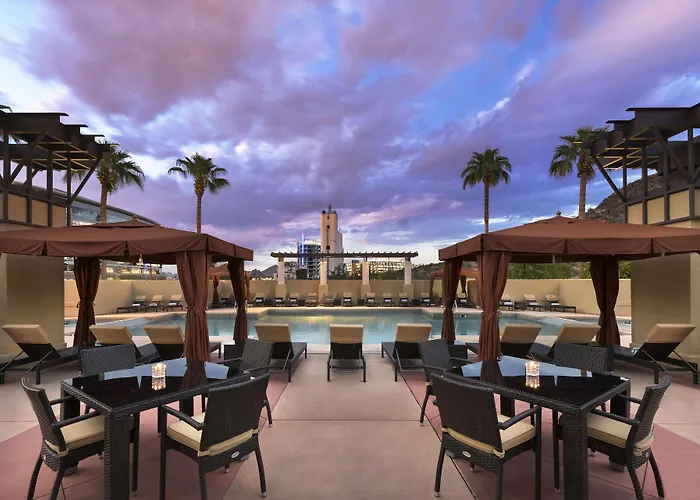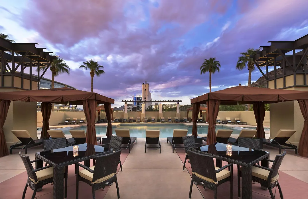 Tempe Mission Palms offers a AAA Four Diamond experience in downtown Tempe, featuring modern Arizona decor and a rooftop heated swimming pool. This 4-star hotel includes the Mission Grille and Harry's Place lounge, along with a fitness center and business services.