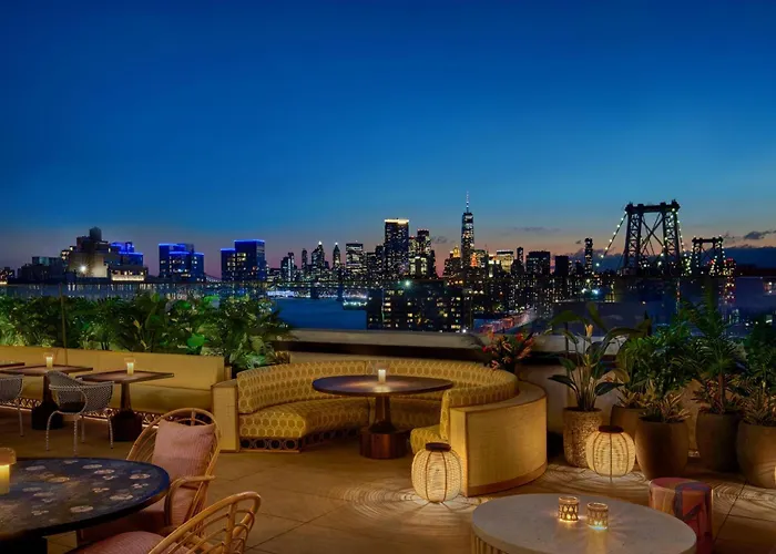 Moxy Brooklyn Williamsburg features a festive Tel Aviv inspired restaurant and a fitness center. This 4-star New York hotel includes a terrace, air-conditioned rooms, and bar service, designed for street-savvy travelers.