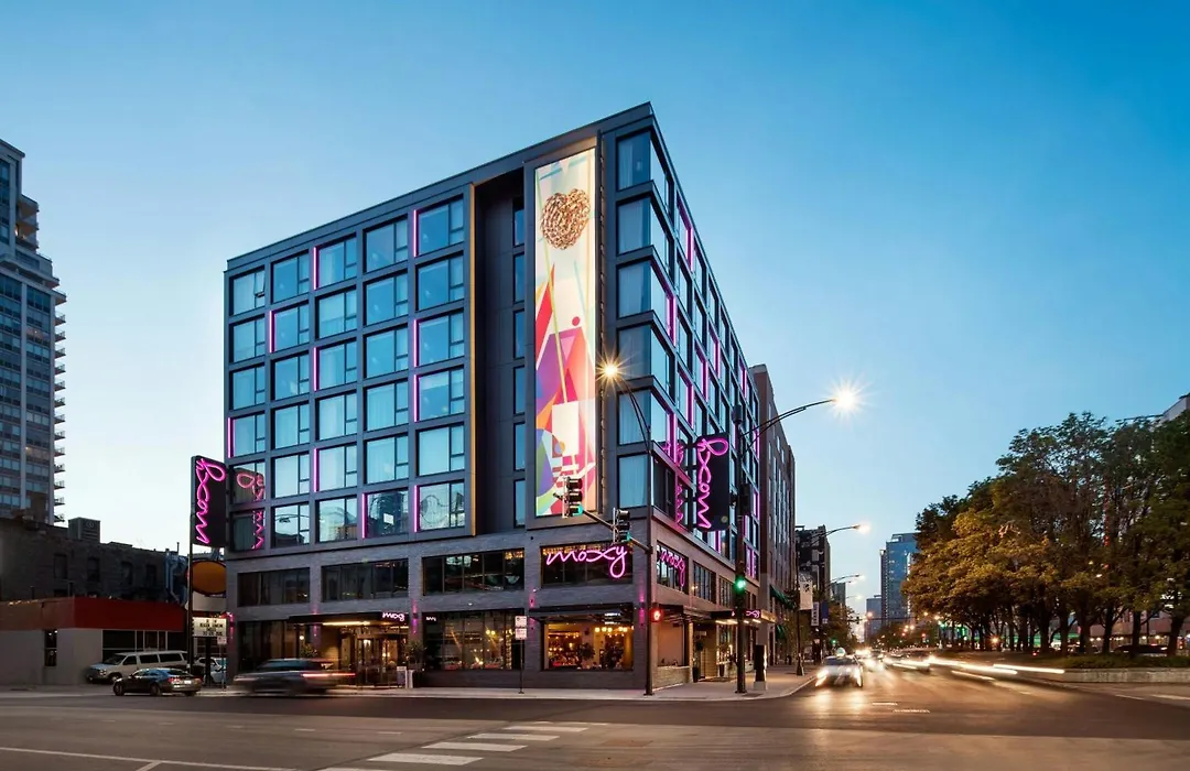 Moxy Chicago Downtown, a 3-star hotel rated 9.1/10 on Booking.com, offers vibrant accommodations in the River North district. Guests can enjoy amenities including free blazing-fast Wi-Fi, a fitness center, and a lively bar. The hotel features flexible room types and unique communal spaces designed for both relaxation and productivity.