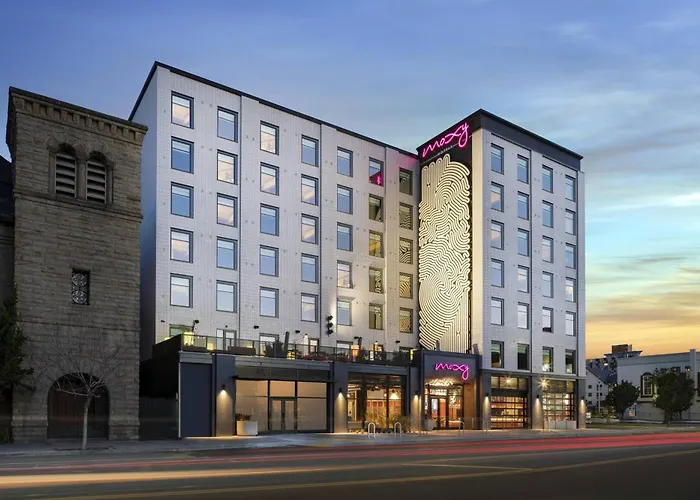 Moxy Oakland Uptown offers affordable accommodations with a vibrant social hub featuring a bar and lounge. This 2-star Oakland hotel includes a fitness center and private parking, as well as a 24-hour front desk.