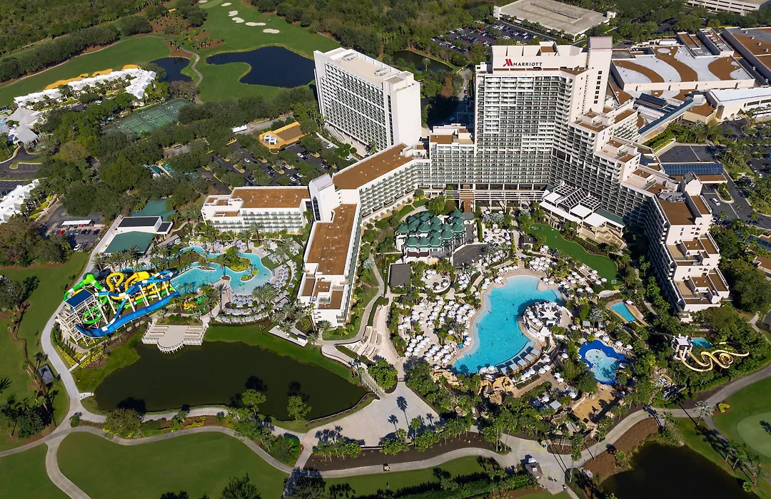 Orlando World Center Marriott provides 500000 square feet of meeting space suitable for events. Shuttle service to Walt Disney World is included in the resort fee, enhancing accessibility for guests visiting the parks.