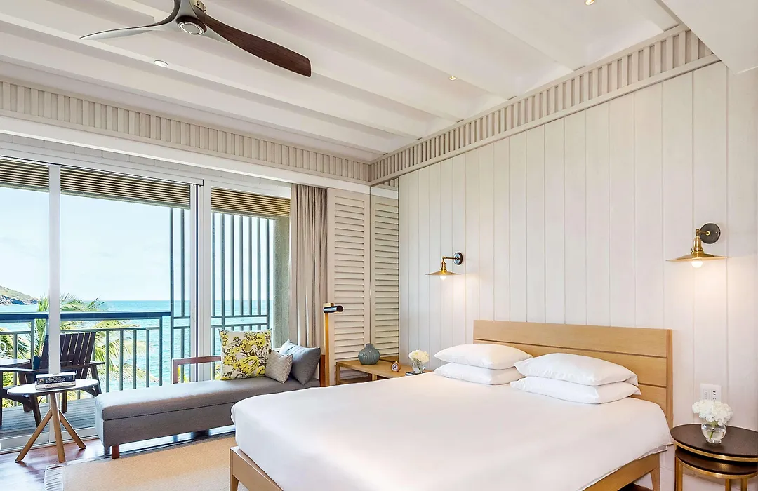 Guest rooms at Park Hyatt St. Kitts incorporate contemporary architecture with historic elements, offering views of Banana Bay or the beach. Amenities include air conditioning, flat-screen TVs, and private terraces with spa-inspired bathrooms.