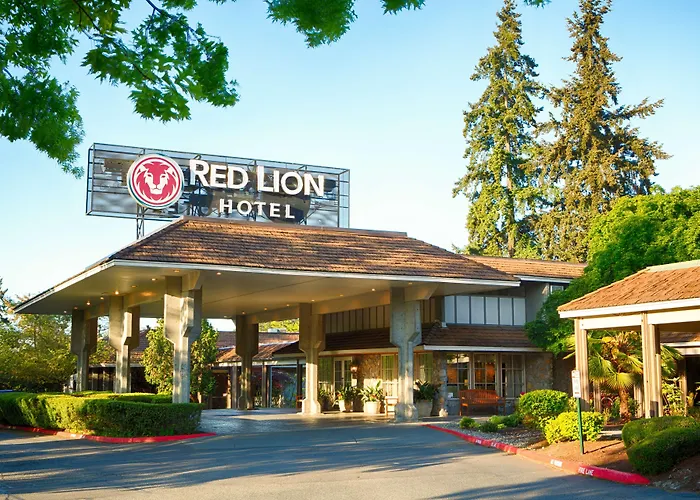 Red Lion Hotel Bellevue, a 3-star hotel, offers an outdoor seasonal pool and a fully equipped fitness center. Guests can enjoy a complimentary to-go breakfast and access to free Wi-Fi throughout the property.