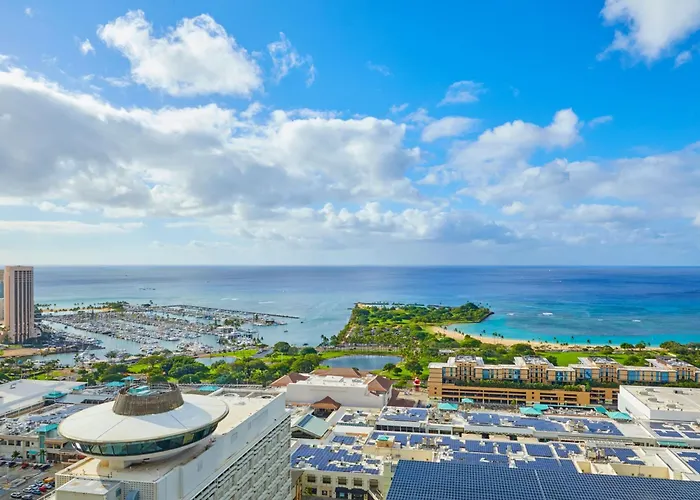 Renaissance Honolulu Hotel & Spa, rated 8.6/10 on Booking.com, features luxury accommodations with stunning ocean views and a range of artistic designs. This 5-star hotel includes a full-service spa, outdoor pool, and multiple dining options. Located between Waikīkī and Kaka'ako, it offers convenience alongside island beauty.