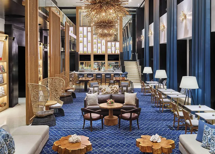 Hotel Republic San Diego, Autograph Collection, a 4-star hotel with an 8.0/10 rating on Booking.com, offers a blend of contemporary elegance and modern amenities in the Gaslamp Quarter. The hotel features a rooftop bar, multiple dining options, and a state-of-the-art fitness center.