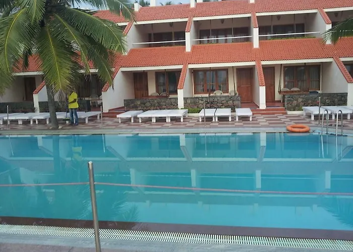 The hotel's in-house restaurant serves Indian and Chinese cuisine, and guests can enjoy a complimentary continental breakfast. Outdoor dining is available with views of the beach. A poolside bar complements the dining experience with a selection of beverages.