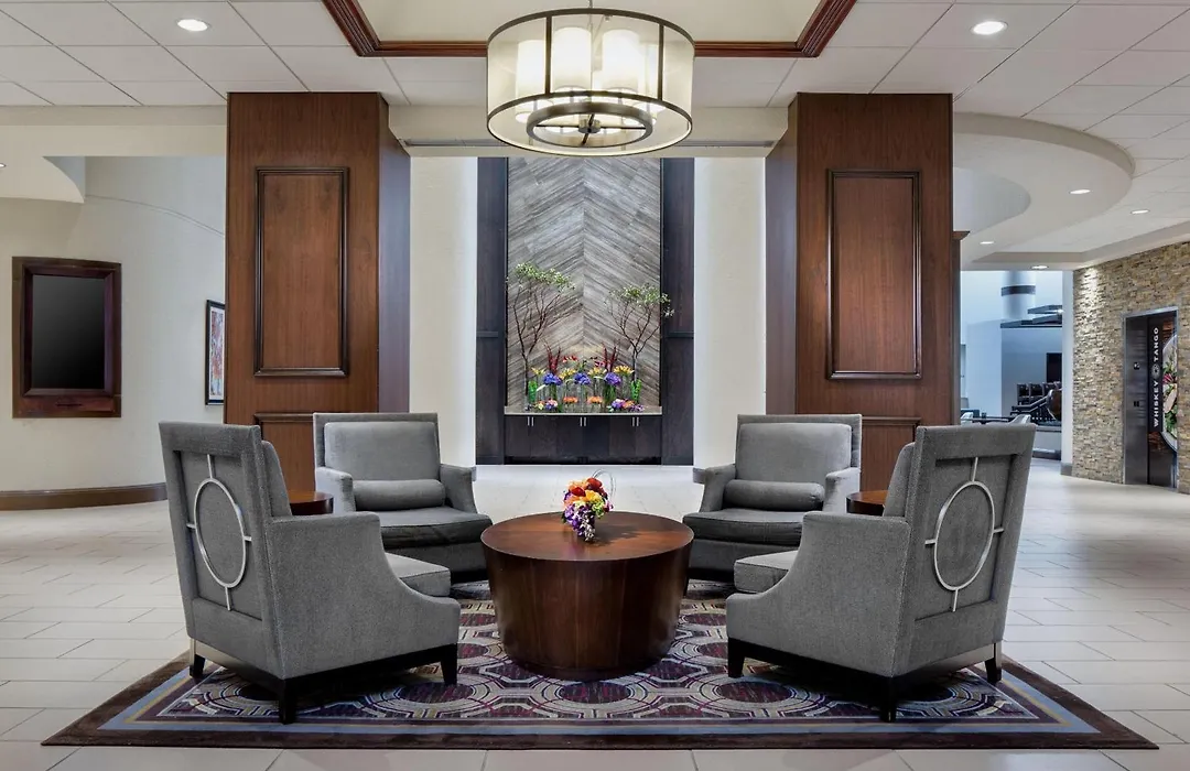 Sheraton DFW Airport Hotel offers a blend of functionality and comfort with its 4-star rating and a comprehensive set of amenities. This Irving hotel features a complimentary airport shuttle, free parking, high-speed Wi-Fi, and a 24-hour fitness center.