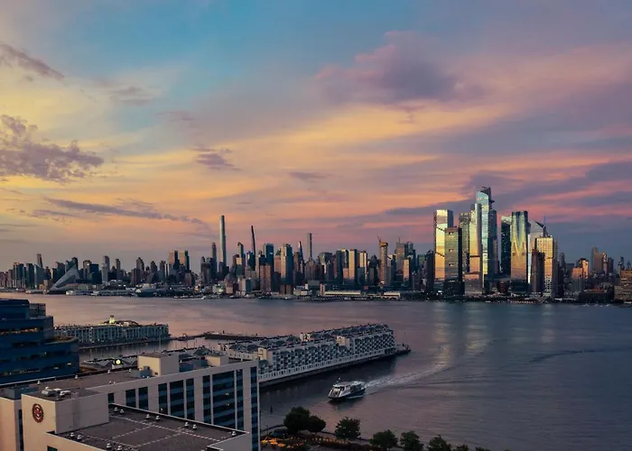 Sheraton Lincoln Harbor Hotel, a 3-star Weehawken hotel with an 8.4/10 rating on Booking.com, features stunning views of the New York City skyline alongside modern amenities. This establishment provides spacious rooms equipped with high-speed Wi-Fi and a full-service restaurant, making it a valuable choice for both leisure and business travelers.