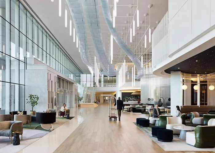Signia By Hilton Atlanta Georgia World Congress Center, a 5-star hotel with an 8.9 rating on Booking.com, features a rooftop pool and a wellness center. The hotel offers eight dining options and over 100000 sq. ft. of meeting space, making it suitable for both leisure and business travelers.