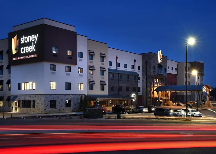 Stoney Creek Hotel Tulsa - Broken Arrow, rated 8.9/10 on Booking.com, offers modern amenities with a rustic lodge feel. This 3-star Broken Arrow hotel features an indoor/outdoor pool, fitness center, and a complimentary breakfast buffet.