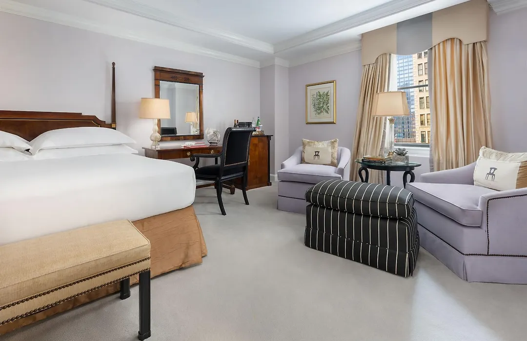 The Michelangelo Hotel offers sumptuously appointed rooms and suites equipped with modern comforts including luxurious marble bathrooms. Each room features items such as plush bedding, mini-bars, and flat-screen TVs, creating a spacious sanctuary for visitors.