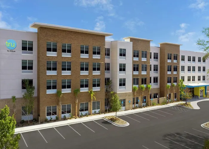 Tru By Hilton Mt Pleasant Charleston offers a pet-friendly experience with modern amenities, including a complimentary buffet breakfast and an outdoor pool. This 3-star Mount Pleasant hotel has a rating of 8.8/10 on Booking.com, making it a convenient option for travelers.
