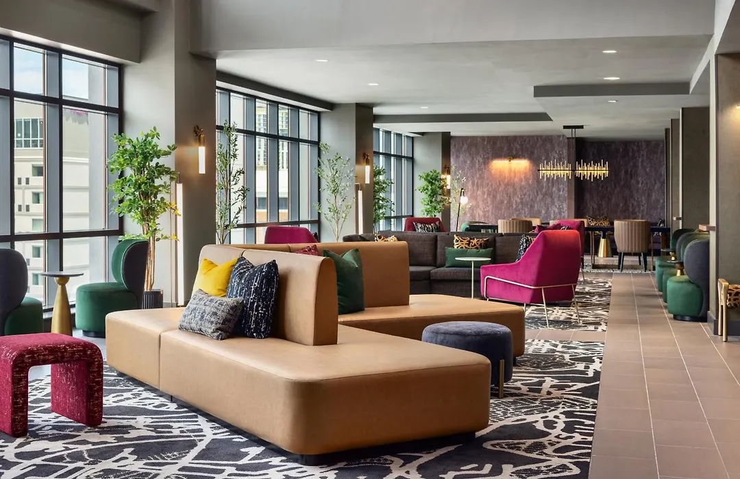 Dining options include the on-site Fahrenheit restaurant, which serves American cuisine alongside a rooftop cocktail bar. Guests can also find local dining choices within walking distance, such as Blackfinn Ameripub and The Great American Grill.