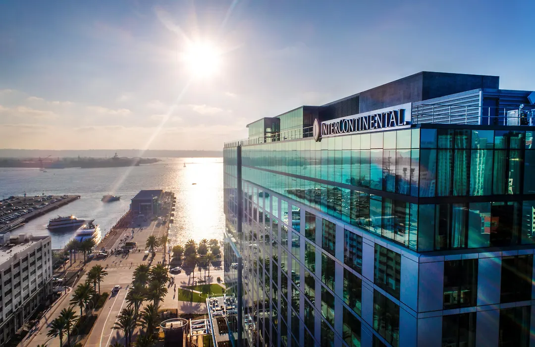 Intercontinental San Diego By Ihg, a 4-star hotel with a rating of 8.3/10 on Booking.com, offers modern luxury and stunning views of the waterfront. This pet-friendly hotel features upscale amenities including multiple dining venues and elegant event spaces, making it suitable for both leisure and business travelers.