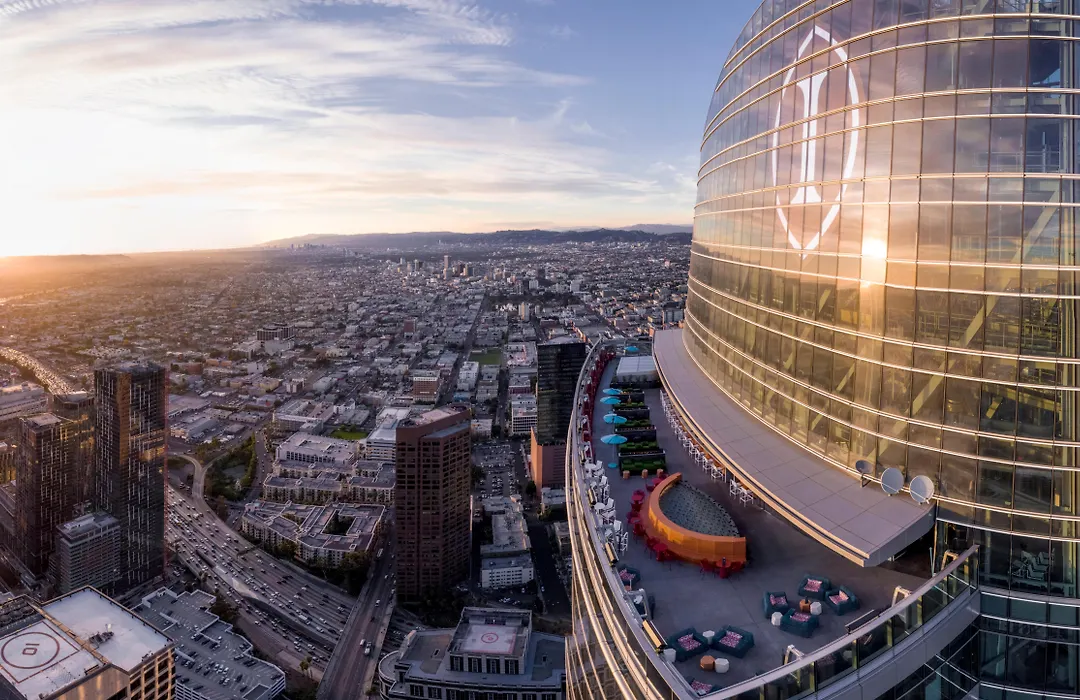 Intercontinental - Los Angeles Downtown By IHG (5-star, 8.8/10 on Booking.com) boasts 360-degree views from the tallest building on the West Coast, offering a cabana-lined outdoor pool and multiple dining options. This luxury hotel emphasizes modern amenities and world-class hospitality in the Financial District.