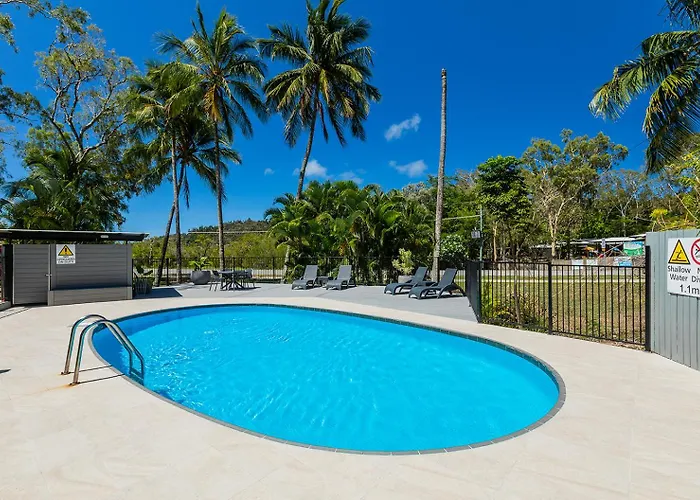 Kipara Tropical Rainforest Retreat offers budget accommodations with self-contained villas and private rooms set amidst lush greenery. This 3-star Airlie Beach hotel features amenities such as a generously sized pool and communal BBQ facilities.