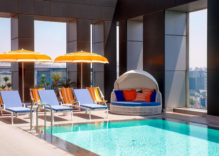L7 Hongdae By Lotte Hotels is a 4-star Seoul hotel featuring a rooftop pool and trendy rooftop bar. The hotel is located in the vibrant Hongdae district, known for its cultural and artistic scene.