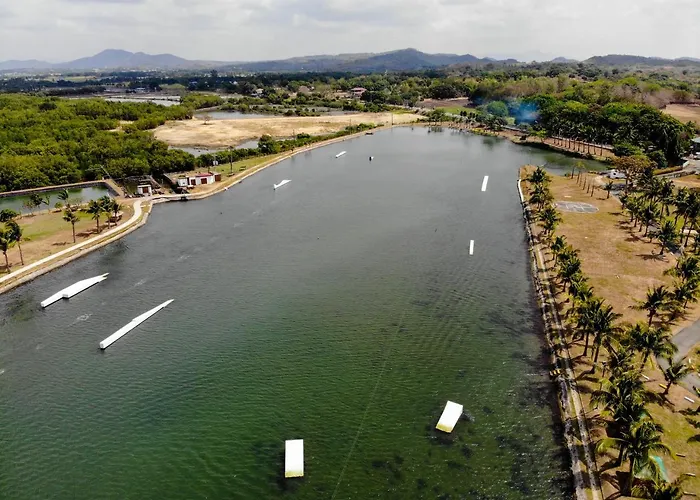 Lago De Oro features leisure amenities including access to the wakeboard park and expansive outdoor areas for relaxation. Activities are tailored for both families and friends seeking a unique getaway experience.