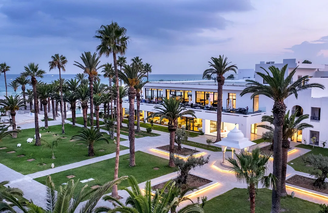 Les Orangers Garden Villas And Bungalows Ultra All Inclusive, a 5-star Hammamet hotel, features a private beach and two outdoor swimming pools set in landscaped gardens. The property offers a variety of dining options and leisure facilities, ensuring a comprehensive holiday experience.