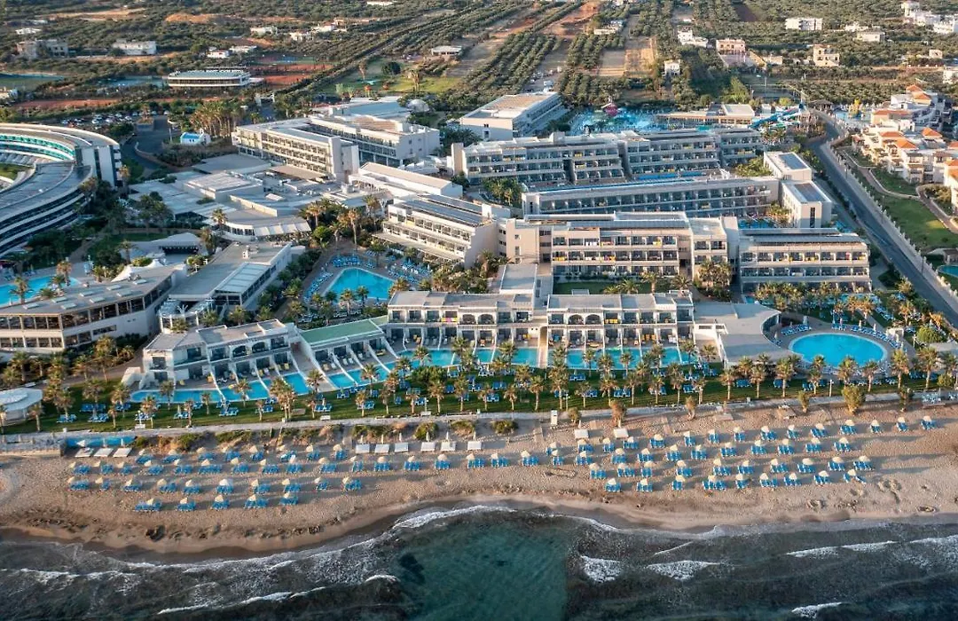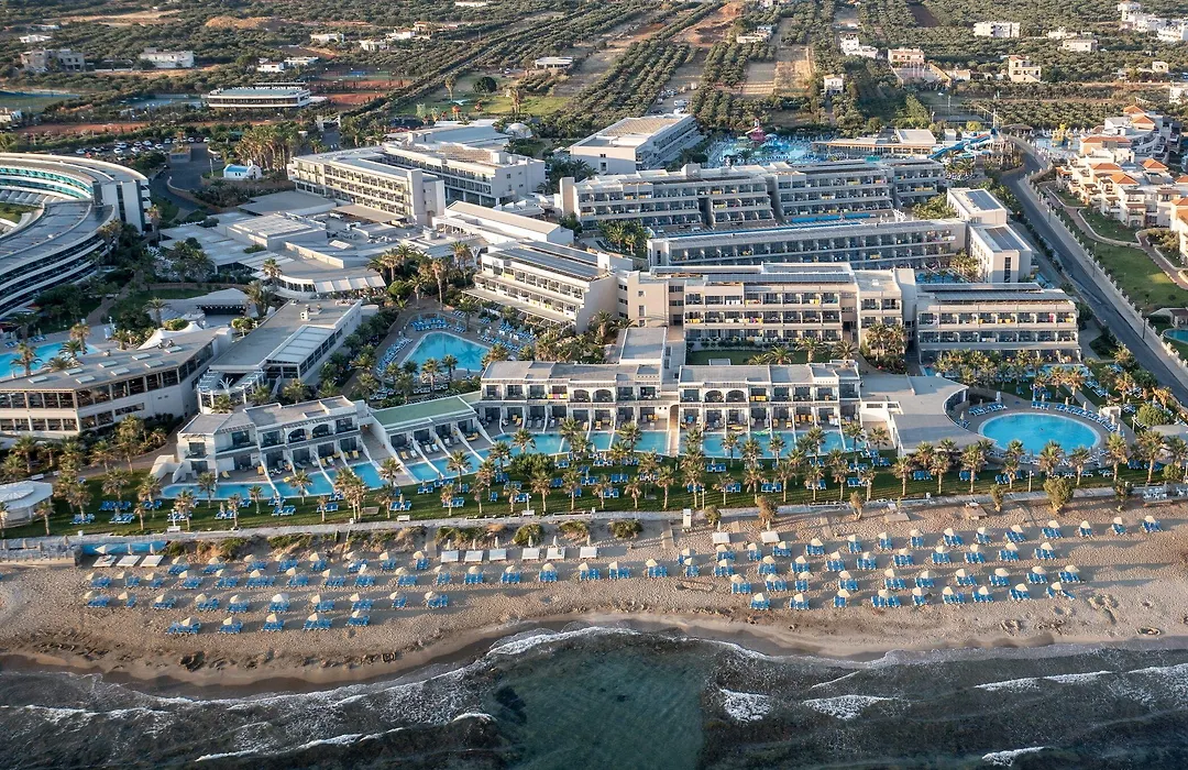 Lyttos Beach, a 5-star all-inclusive resort, offers a state-of-the-art water park, extensive sports facilities, and direct access to a magnificent sandy beach. Guests can enjoy 24-hour room service, a variety of dining options, and family-friendly activities, ensuring a memorable experience.