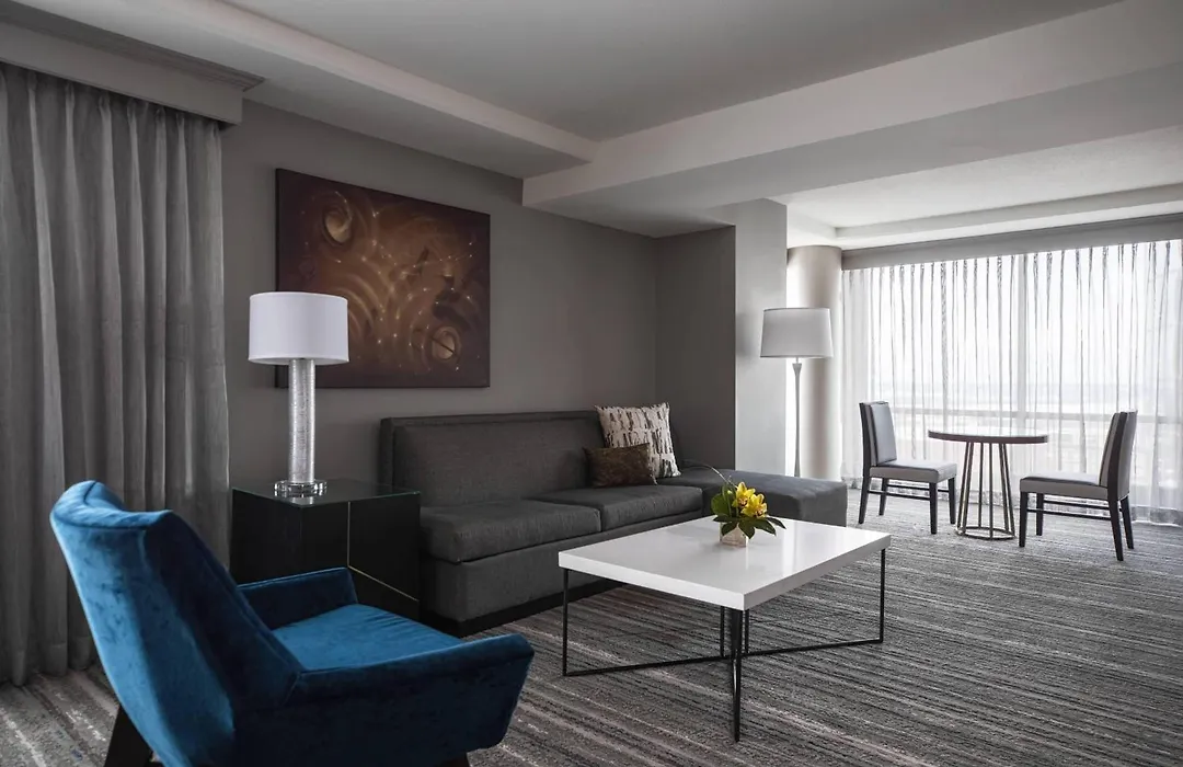 Kansas City Marriott Downtown offers 970 updated rooms equipped with amenities such as complimentary Wi-Fi, premium bedding, and 55-inch Smart TVs. Guests can expect additional conveniences like 24-hour room service and floor-to-ceiling windows in select accommodations.