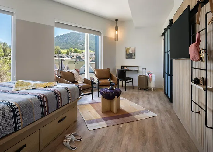 Moxy Boulder University, a 4-star boutique hotel with an 8.1/10 rating on Booking.com, features modern accommodations and offers a variety of amenities, including a fitness center, private parking, and on-site dining. Close to notable attractions, this Boulder hotel caters to guests seeking convenience and comfort.