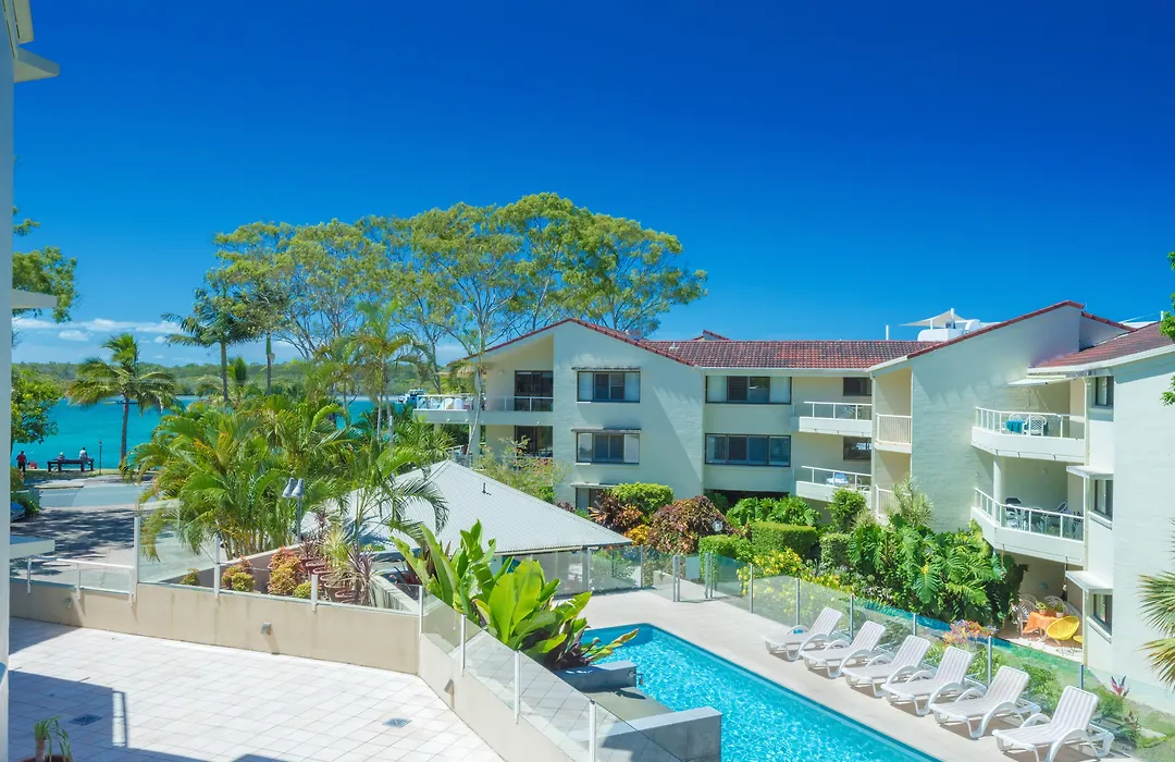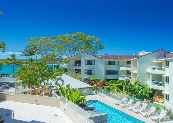 Munna Beach Apartments, a 4-star Noosaville hotel with an 8.7/10 rating on Booking.com, features spacious two- and three-bedroom apartments with water or garden views. Guests benefit from amenities including a large heated pool, BBQ areas, and easy access to local cafes and boutiques.