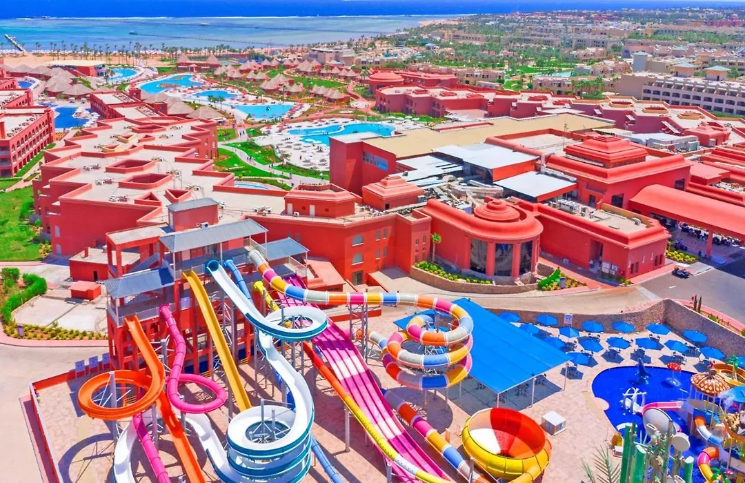 Pickalbatros Laguna Vista Aqua Park offers a private beach on the Gulf of Aqaba, a 5-star family-friendly resort featuring a comprehensive Aqua Park with 8 adult slides and a dedicated kids' tower. Guests can enjoy amenities such as a wellness center, multiple dining options, and nightly entertainment.