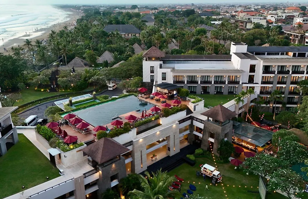 Pullman Bali Legian Beach is a 5-star beachfront resort featuring spacious rooms with panoramic ocean and garden views, a day spa, and two landscaped lagoon pools. The hotel includes a fitness center, multiple dining options, and three bars, providing a comprehensive experience for guests. With a rating of 7.7/10 on Booking.com, it offers access to local shopping and recreational areas.