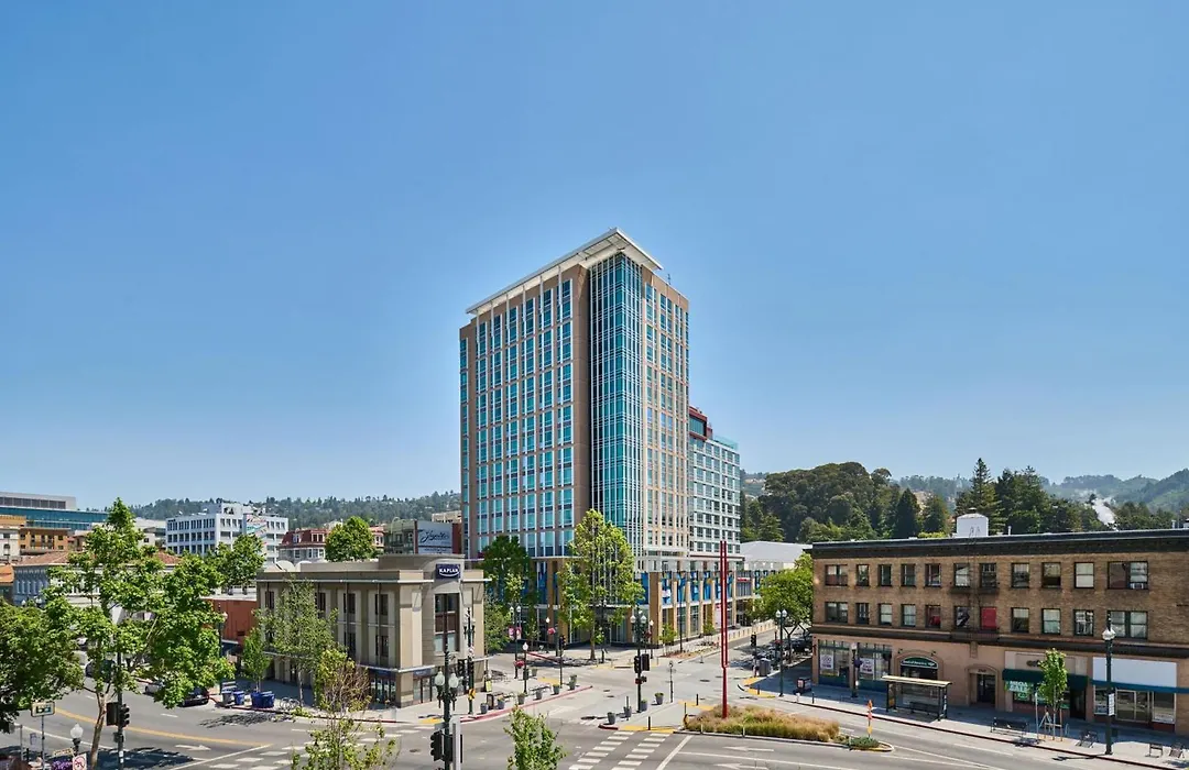 Business travelers can utilize versatile meeting spaces accommodating up to 300 guests, equipped with modern conveniences. The hotel provides easy access to public transportation options like BART, facilitating travel to attractions such as the Golden Gate Bridge and the Berkeley Art Museum & Film Archive. Valet parking services are also available for guest convenience.