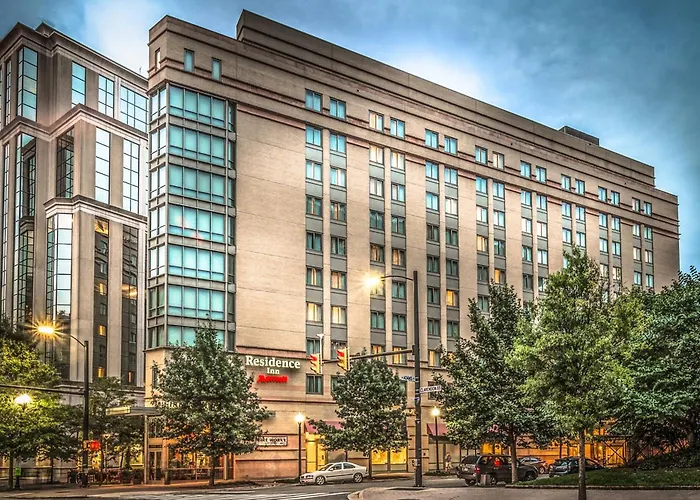 Residence Inn Arlington Courthouse, a 3-star hotel, offers spacious Studio, One Bedroom, and Two Bedroom Suites with fully equipped kitchens and free Wi-Fi. Located in the Clarendon district, it features an indoor pool, a 24-hour fitness center, and amenities tailored for extended stays.