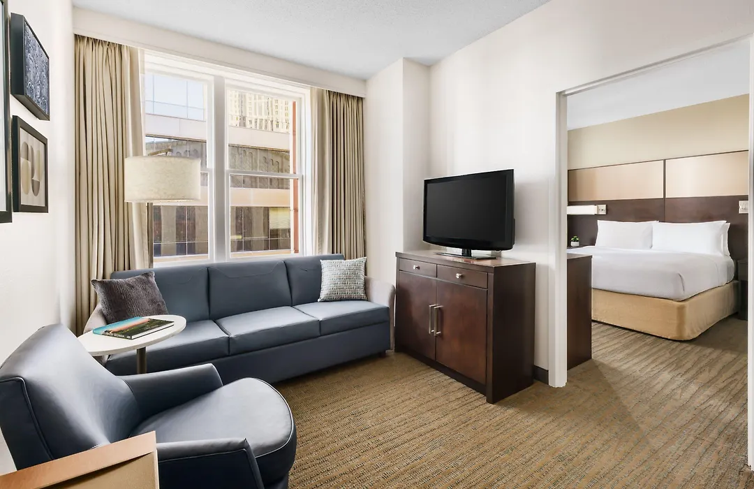 Residence Inn Atlanta Downtown is a 3-star pet-friendly hotel offering spacious guest suites equipped with full kitchens and located near key attractions. Guests can enjoy a large buffet breakfast and access a fitness center with views of Peachtree Street.