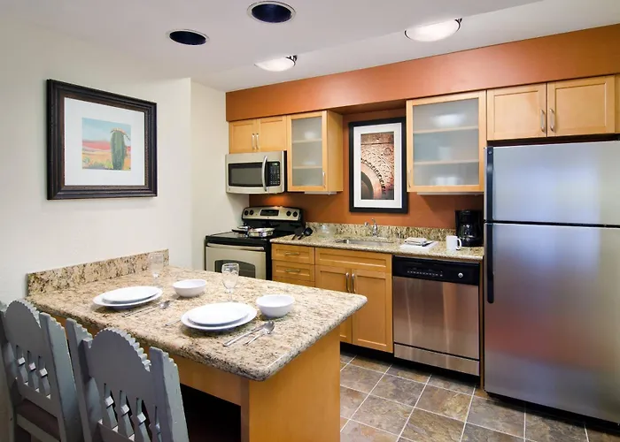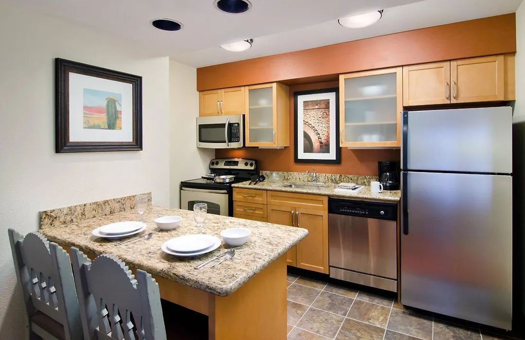 Rooms at Residence Inn feature authentic New Mexican Mission Style furniture and a cozy fireplace in every suite. Each room is equipped with a microwave, refrigerator, and a stovetop oven, providing the convenience of home. Complimentary Wi-Fi and access to 40 HD channels enhance the guest experience.