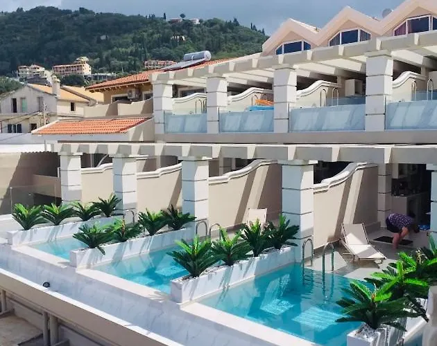 Leisure facilities at the resort include a pool with a view and a hot tub for relaxation. Nearby attractions include Paralia Agios Gordios (0.5 km) and Achilleion (5 km), ideal for exploration and activities.