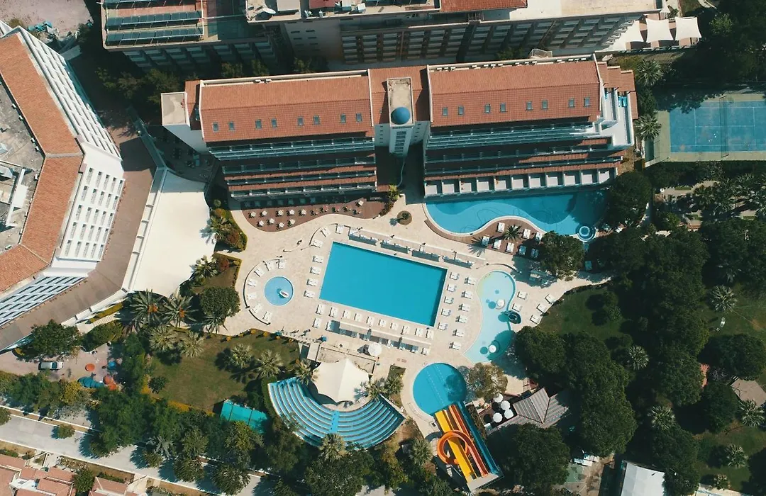 Guests at Batihan Beach Resort & Spa can engage in numerous recreational activities, from watersports like diving and jet skiing to beach volleyball, basketball, and mini-golf. The hotel features extensive pools and wellness options, including a spa with a Turkish bath and a steam bath.