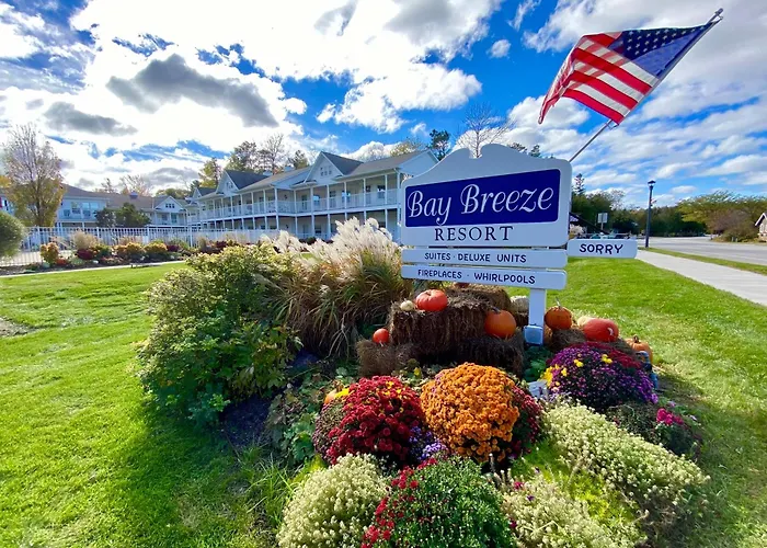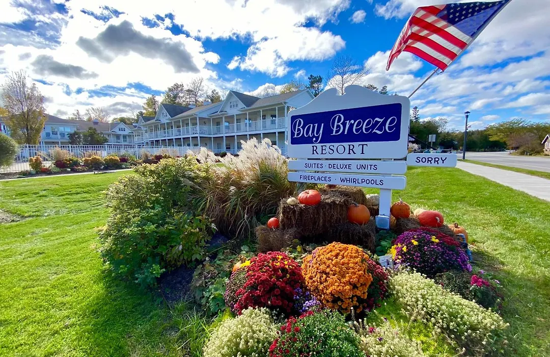 Accommodations at Bay Breeze Resort include a variety of room types, such as King suites and rooms with the Ultimate Kohler Rain Shower experience. Guests can enjoy amenities like flat-screen TVs, jetted whirlpool tubs, and gas fireplaces.