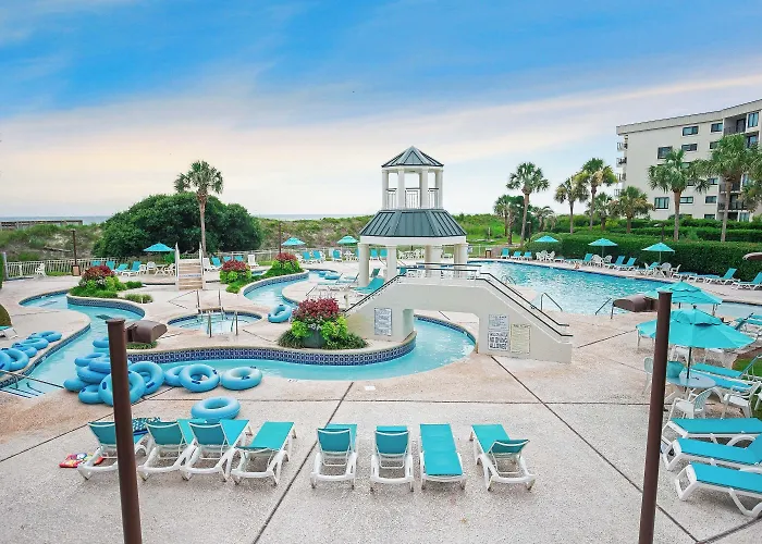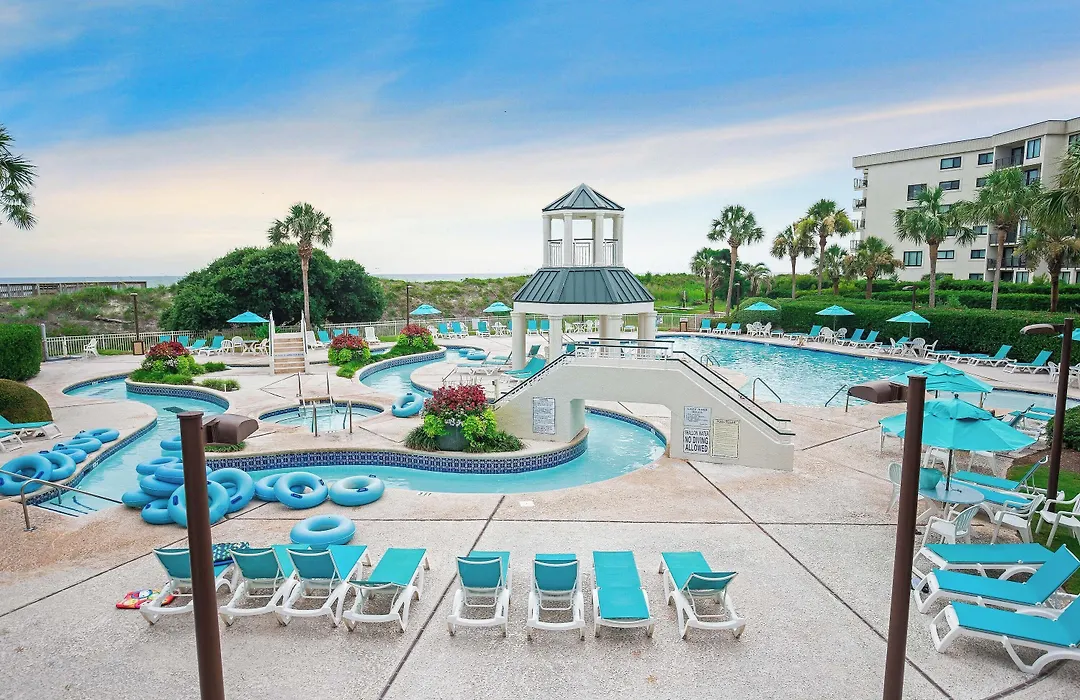For leisure, the resort includes outdoor pools, a lazy river, and a mini waterpark. Golf enthusiasts can access nearby acclaimed courses like Caledonia Golf & Fish Club and Willbrook Plantation within a short driving distance.