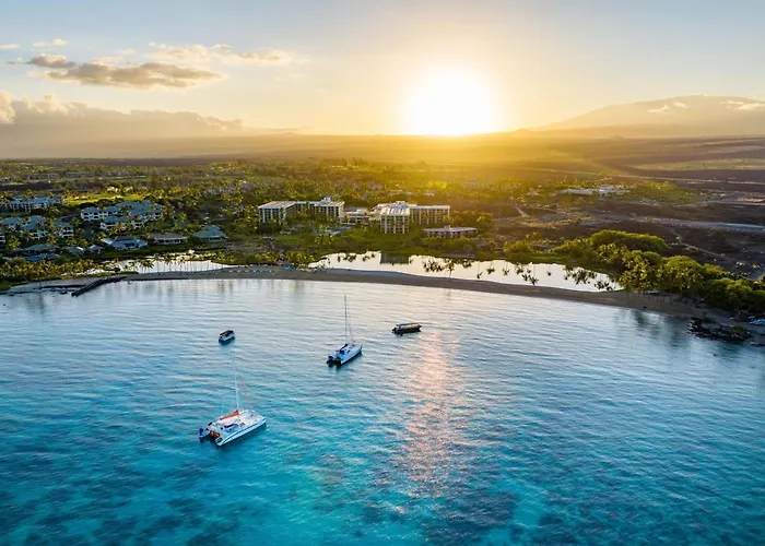 Waikoloa Beach Marriott Resort & Spa, a 4-star beachfront haven, offers three swimming pools, including a children's pool with a sandy bottom, and is situated near iconic beaches and golf courses. This Waikoloa hotel features upscale amenities like the Mandara Spa and dining options highlighting local cuisine.