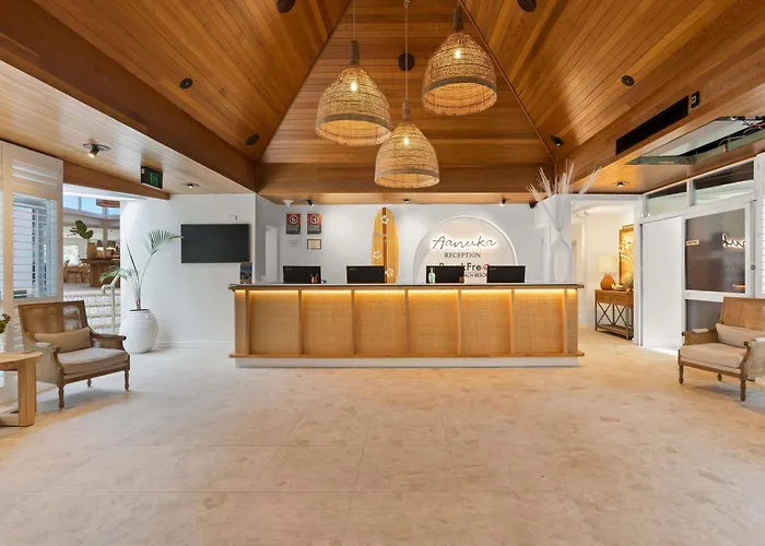 Recreational activities at Breakfree Aanuka Beach Resort include four swimming pools, three tennis courts, and a gym. Guests can also indulge in treatments at the Mi-Time Day Spa, featuring personalized services like massages and facials. The extensive outdoor activities range from surfing to whale watching.