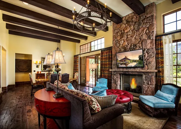 Accommodations at Gateway Canyons Resort range from spacious haciendas with outdoor showers to premium casitas featuring fire pits and large living areas. Rooms are equipped with amenities such as flat-screen TVs, mini-bars, and private bathrooms. Some casitas also come with unobstructed views of the star-filled sky from a dedicated terrace.