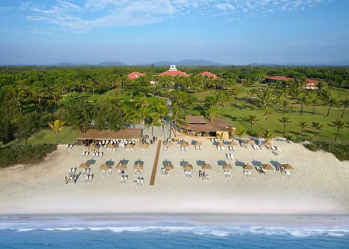 Caravela Beach Resort offers a blend of luxury and tranquility with its beachfront access and extensive amenities, set within a lush 9 hectare estate. This 5-star resort features a golf course, multiple dining options, and various leisure activities. The property is known for its exceptional service and picturesque surroundings.