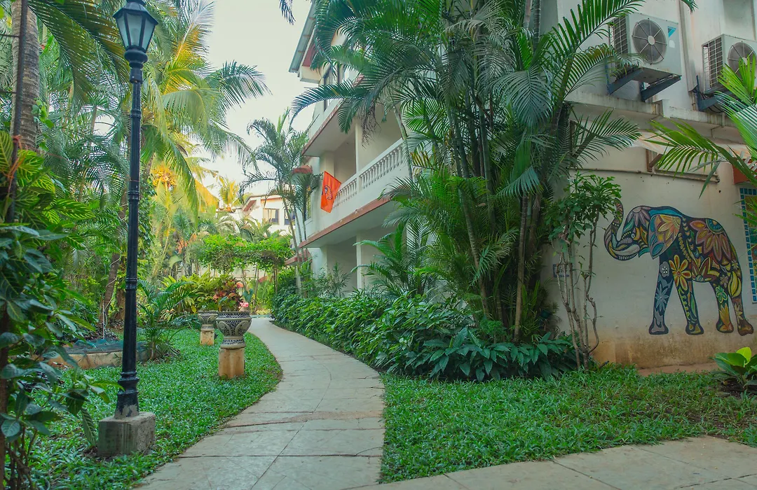 The resort's main pool, set amidst landscaped gardens, provides a relaxing spot for guests. Other leisure options include exploring the neighborhood by renting cars or motorbikes. Just a short stroll away lies the sandy beach of the Arabian Sea, accentuating the resort's coastal charm.
