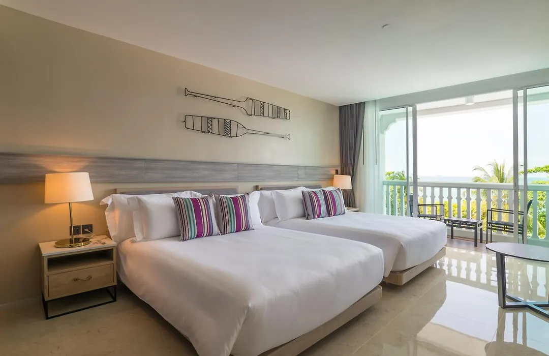 Centara Ao Nang Beach Resort & Spa Krabi features 179 rooms, all equipped with private balconies or terraces showcasing tropical views. The Deluxe Ocean View room, spanning 47 m², accommodates up to 2 adults and 2 children with both bathtub and shower facilities.