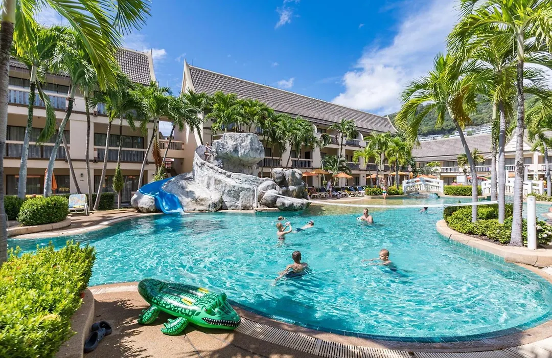 The resort's leisure amenities include a main swimming pool complete with a waterslide, a separate children's pool, and two Kids' Clubs offering activities tailored for different age groups. A tour desk can help guests arrange snorkelling, island hopping, and family-friendly treks.