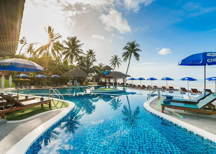 Chaba Cabana Beach Resort, a 4-star establishment rated 8.4/10 on Booking.com, features direct beachfront access, modern aesthetics, and a combination of rustic island charm. Guests can enjoy amenities like an outdoor swimming pool, fitness center, and on-site dining options.