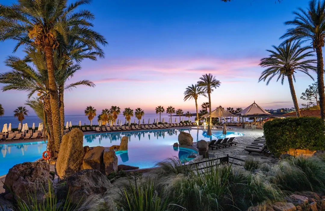 Renowned Coral Beach Hotel & Resort offers a 5-star experience along 300 meters of sandy beach adjacent to the protected Akamas peninsula. This family-friendly establishment features various facilities including a grand pool complex and a health and beauty spa. The hotel's unique architecture integrates traditional Cypriot design with natural elements.