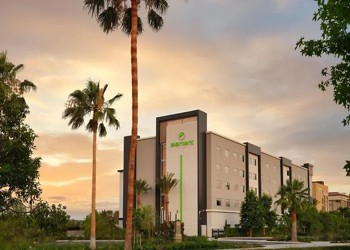 Element Anaheim Resort Convention Center, a 3-star Anaheim hotel rated 9.1/10 on Booking.com, offers convenient access to Disneyland Resort with a walking distance of just 10 minutes. The hotel features modern studio and one-bedroom suites, a fitness center, outdoor pool, and provides complimentary breakfast.